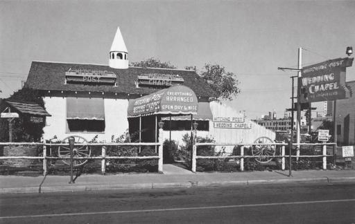 Las Vegas made it easy to get married. There was no blood test required or waiting period. Many a couple eloped to Las Vegas. In 1923, the residence at 226 South Fifth Street (now Las Vegas Boulevard) was built. After remodeling the home, Halley and Mildred Stewart opened the old West–themed Hitching Post Wedding Chapel in 1940. It was one of the first wedding chapels in Las Vegas. Today a bank sits on the property.