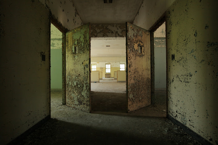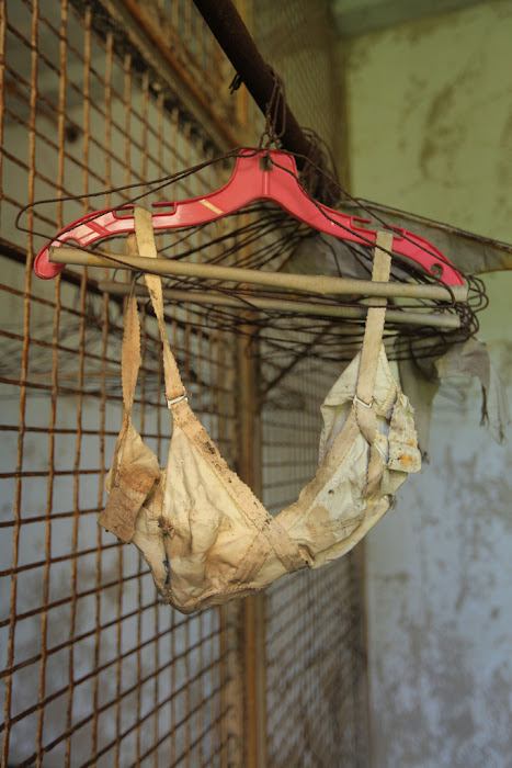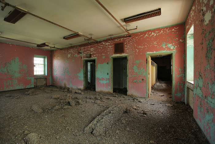 The building was an active ward until some time in the 1970s, and retains many mementos from its days as a residence and treatment center for the mentally ill. With peeling paint, dusty furniture, and dark corridors, the lower floors are typical of a long-abandoned hospital, but upstairs, the effect of time has taken a grotesque turn.