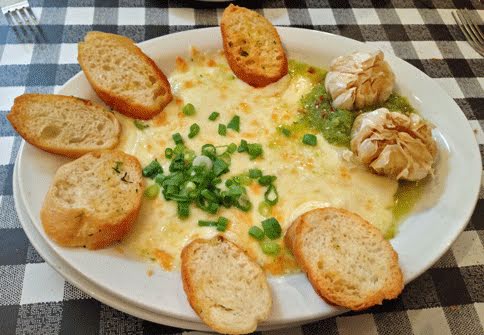 Cowgirl’s menu has something for everyone including several excellent starters. The nachos are inventive and delicious–with generous dollops of sour cream, guacamole and salsa, two kinds of melted cheese (a white Mexican queso and an American longhorn) and black olives atop blue- and yellow-corn tortilla chips. You can also ask for shredded barbecue beef as a topper to this mountainous mélange, which in February, 2006 was named by the Wall Street Journal as among the fifteen best nachos in America. El Pinto’s in Albuquerque was the only other New Mexico restaurant on this exclusive list.