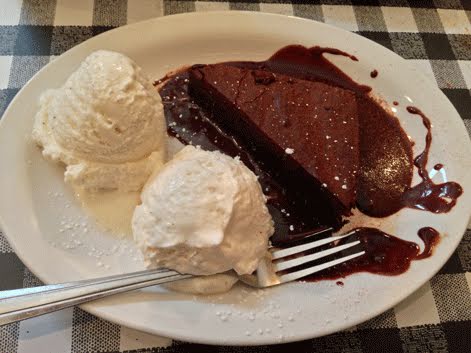 Dessert offerings include pastel tres leches, the wonderful Mexican tort made with three types of milk. Cowgirl’s version isn’t quite as moist as other tres leches cake we’ve had, but is served with a rich cream and tart strawberries that made up for its lack of moistness somewhat. A better option is the flourless chocolate cake with chile served with a side of vanilla ice cream, a dollop of housemade whipped cream and a drizzle of chile-infused chocolate sauce. The combination of adult chocolate and red chile is one of life’s great pleasures, a dessert that doesn’t have the cloying qualities that rot your teeth at the mere mention.