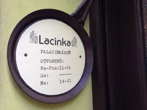 Palacinka Lacinka is my sin spot. I am there so often that I think I am addicted. It is kind of a ritual to have a break at work and go for a pancake. Actually I think the better word is crepe, because crepes do not contain baking powder or baking soda for leavening. These crepes have the classic rolled up shape.