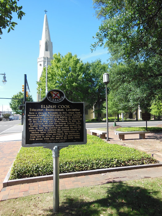 Elijah CookBorn a slave in Wetumpka in 1833, Elijah Cook became a leader in Montgomery’s African American community. Credited with helping to establish the city’s first school for blacks in the basement of the Old Ship AME Zion Church in 1865, he also selected the site for Swayne College (later Booker T. Washington School) that opened in 1868. In 1887, he assisted in posting the $10,000 surety bond to relocate the Lincoln School of Marion (later Alabama State University) to Montgomery. After serving in the legislature from 1874 to 1876, he opened an undertaking firm across from city hall in the early 1880’s.