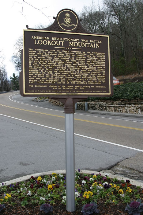The Chattanooga area was firmly controlled by the Chickamauga Indians at the time of The American Revolution. The Cherokee Indian chiefs had signed peace and land treaties with the Colonial settlers. However, a small group of rebellious Cherokees were not in accord with these treaties and continued unabated warfare with the expanding settlers. They were called the Chickamaugas and were led by Chief Dragging Canoe. They were actively supported by the British through local agents and traders. The Government of North Carolina authorized a Military Campaign against them in the summer of 1782, pledging Continental Congressional support. Colonel John Sevier organized a force of some of 250 "Nolichucky Riflemen" to pursue the Chickamaugas and to rescue captives. On September 20, 1782, after several minor encounters, Sevier and his men engaged the Chickamaugas in a battle high in the palisades at the north end of Lookout Mountain. The Frontiersmen's accurate rifle fire soon overcame their foes. This was an official Revolutionary War engagement and is considered by many to be the