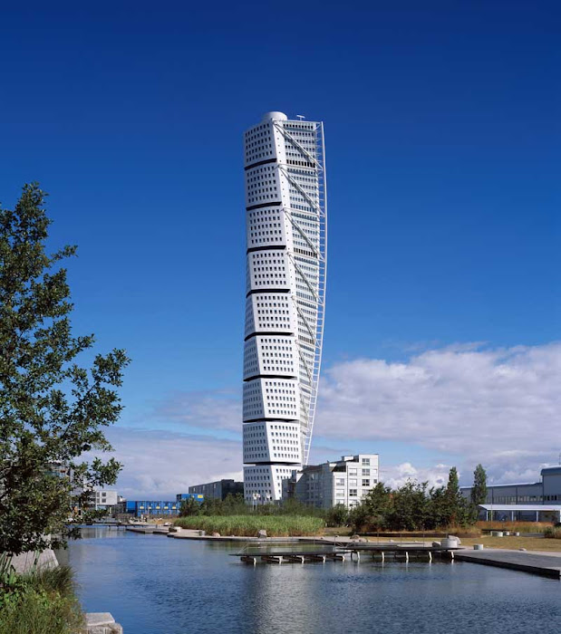 In 1999, Santiago Calatrava was invited to design a mixed-use residential tower for a prominent site in Malmö's Western Harbor area, with the plans to be exhibited in the European Housing Expo 2001 (Bo01). The project was envisioned as an important part of the transformation of Malmö's Western Harbor near the Öresund Bridge, which connects Sweden and Denmark. Once a decaying industrial area, the Western Harbor is rapidly becoming a mixed-use residential district and today features housing, restaurants, shops and businesses, a marina, and Malmö University.