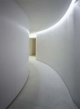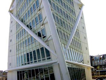 The entire building is handicapped accessible and features a highly advanced environmental design. Moreover, the engineering has allowed for an extraordinarily efficient method of construction. After the sub-basement was erected as a conventional concrete work, the vertical circulation nucleus and slabs were put up using a sliding framework system. The exterior steel structure was then attached, using elements that were prefabricated in the shop. Finally, cranes pulled up the in-shop, prefabricated facade. In this way, although the design is highly innovative, construction time was substantially reduced.