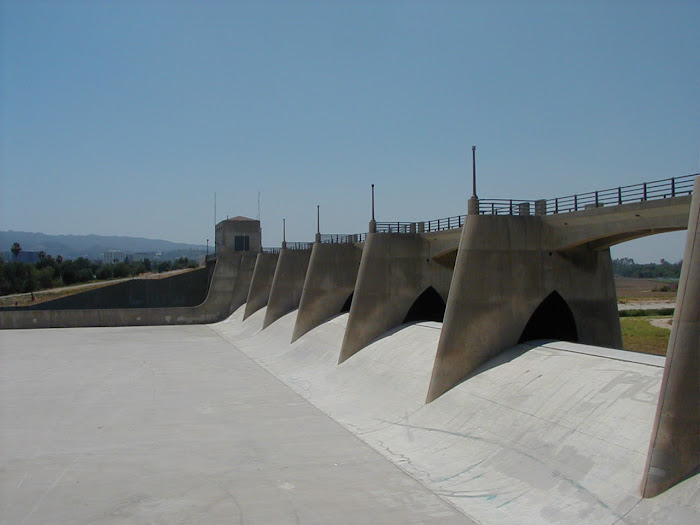 Sepulveda Dam is a project of the U.S. Army Corps of Engineers, built in 1941 to withhold winter flood waters along the Los Angeles River. It is located south of center in the San Fernando Valley, about eight miles east of the river's official source in the western end of the Valley. Behind the dam, the Sepulveda Basin is home to several large recreation areas and parks, a model-aircraft field, The Japanese Garden, a wildlife refuge, a water reclamation plant and an armory. The Basin is kept free of urban over-building so that water can buildup there during the hundred-year flood.