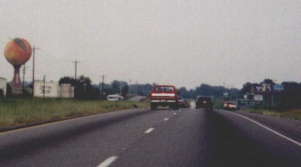 The Peachoid is a four-story (150 feet tall) water tower in Gaffney, South Carolina, United States, that resembles a peach. The water tower holds one million gallons of water and is located on Interstate 85 between exits 90 and 92 (near the Cherokee Foothills National Scenic Highway). Usually referred to by passing motorists as "The Peach" or "The Moon over Gaffney." The water tank is visible for several miles around these exits.